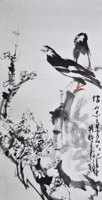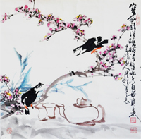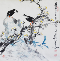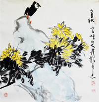 崔辉,1934年生,又名立英、鲁然,室名云峰庐。国 家一级美术师;山东美术馆专业画家;山东画院艺术顾问;山东文史馆馆员。 擅长写意花鸟,在大写意和水墨花卉中将纯朴的自然美凝练成全新的艺术美,表现出不受羁绊的大家风范。他画的鹰、藤萝八哥、柳条翠鸟并称"三绝",其牡丹、菊花、向阳花、雄鸡也极具特色。他的画传统功力深厚,用笔层次分明、潇洒含蓄,笔墨流畅、高度概括,并形成粗犷奔放、雄健憨厚、朴实自然等独特的艺术风格。 作品多次在国风外展出发表,人民大会堂、中南海、外交部和全国各地的诸多展览馆、纪念馆、博物馆均有收藏。1988年在加拿大参加"当代中国传统画展",其名为"高瞻"的雄鹰图,受到了该国观众的击掌赞叹。1990年,受全国人大副委员长阿沛、阿旺晋美之邀、赴人民大会堂西藏参加为西藏人民献画活动,受到了现任总书记胡锦涛和人大副委员长阿沛、阿旺晋美的亲切接见。现场所作的象征西藏人民腾飞的"雄鹰图"备受阿沛、阿旺晋美的赞赏,并称其为"崔老鹰"使之流传。1993年7月,在中国美术馆举办个人画展,党和国家领导人及文化部部长观看了画展后给予了高度评价。1989年山东人民出版社出版了《崔辉画选》。其作品入选 《中国美术家大辞典》、《中国当代画家辞典》等名种典籍。2003年"万芳院崔辉艺术馆"在山东省莱州市落成开馆。 |