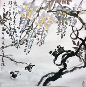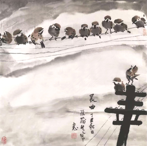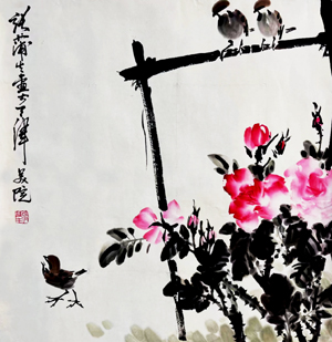 张蒲生,男, 1936年生于陕西大荔。现为天津美院教授,中国美术家协会会员.天津美术家协会理事,天津老年大学书画院院长,文化部全国艺术学科第四批学位授予权评审委员, 第六届全国美展评选委员, 天津美院教学副院长, 学位委员会主席,学术委员会副主任, 中国书画报社社长等职。 擅长写意花鸟画,偶作山水画。梅、兰、竹、菊、月季、牡丹、雄鹰等常见于其笔下 , 尤擅麻雀、其作品多选材平凡事物 .但十分朴实、亲切 , 画中常常表现一群麻雀各种动态, 遥相呼应,十分灵动,充溢着热烈喧闹、活泼欢快的气氛。代表作《瓦雀归巢》、《晨曲》、《麦场无人时》、《风雨欲来》等多次在全国性画展中展出并获奖,并被多家美术馆、博物馆、纪念馆收藏。1983 年 6 月随李瑞环为团长的代表团访问日本,并举办个展。其传记载入十多种辞书典籍。出版有《张蒲生画集》,《张蒲生评集》等。 |