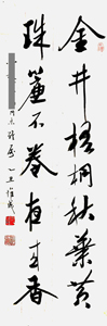 宗惟成,男,字仲酒,别署拙庵,船庐主人,九邱居士。男,汉族,江苏南京人,1914年生。生前为中国书法家协会会员,山东文史馆馆员,山东艺术学院教授。 幼承家学并得张大千,吴湖帆等人指教,1935年毕业于上海新华艺术专科学校,1951年执教于山东艺术学院艺术系。 |